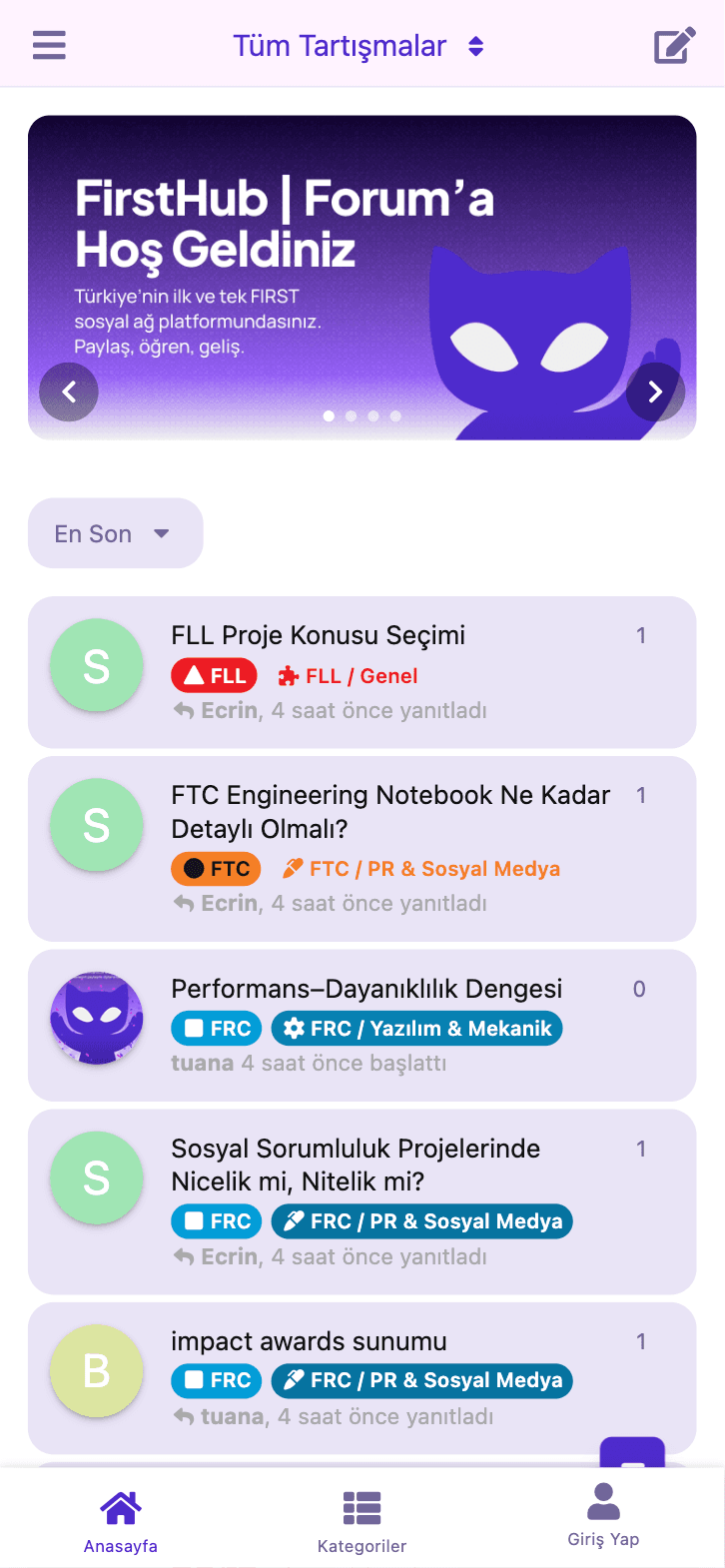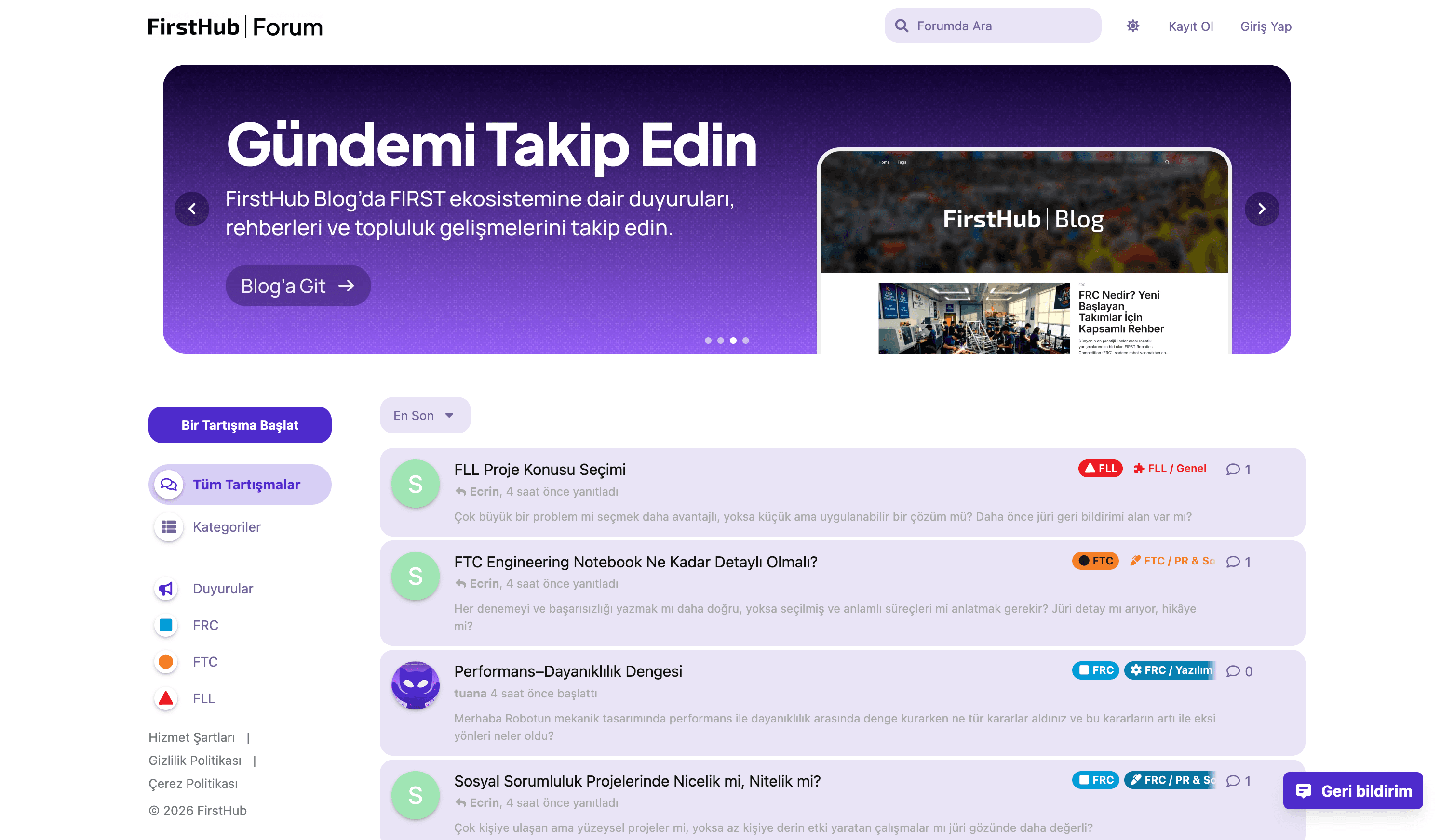 FirstHub, FIRST Robotics Competition, FIRST Tech Challenge ve FIRST LEGO® League dünyasını tek bir çatı altında toplayan bağımsız bir ekosistemdir. Amacımız; bilgiye erişimi demokratikleştirmek, mentor tecrübelerini gençlere aktarmak ve takımlar arası yardımlaşmayı bir sosyal ağ dinamizmiyle birleştirmektir.