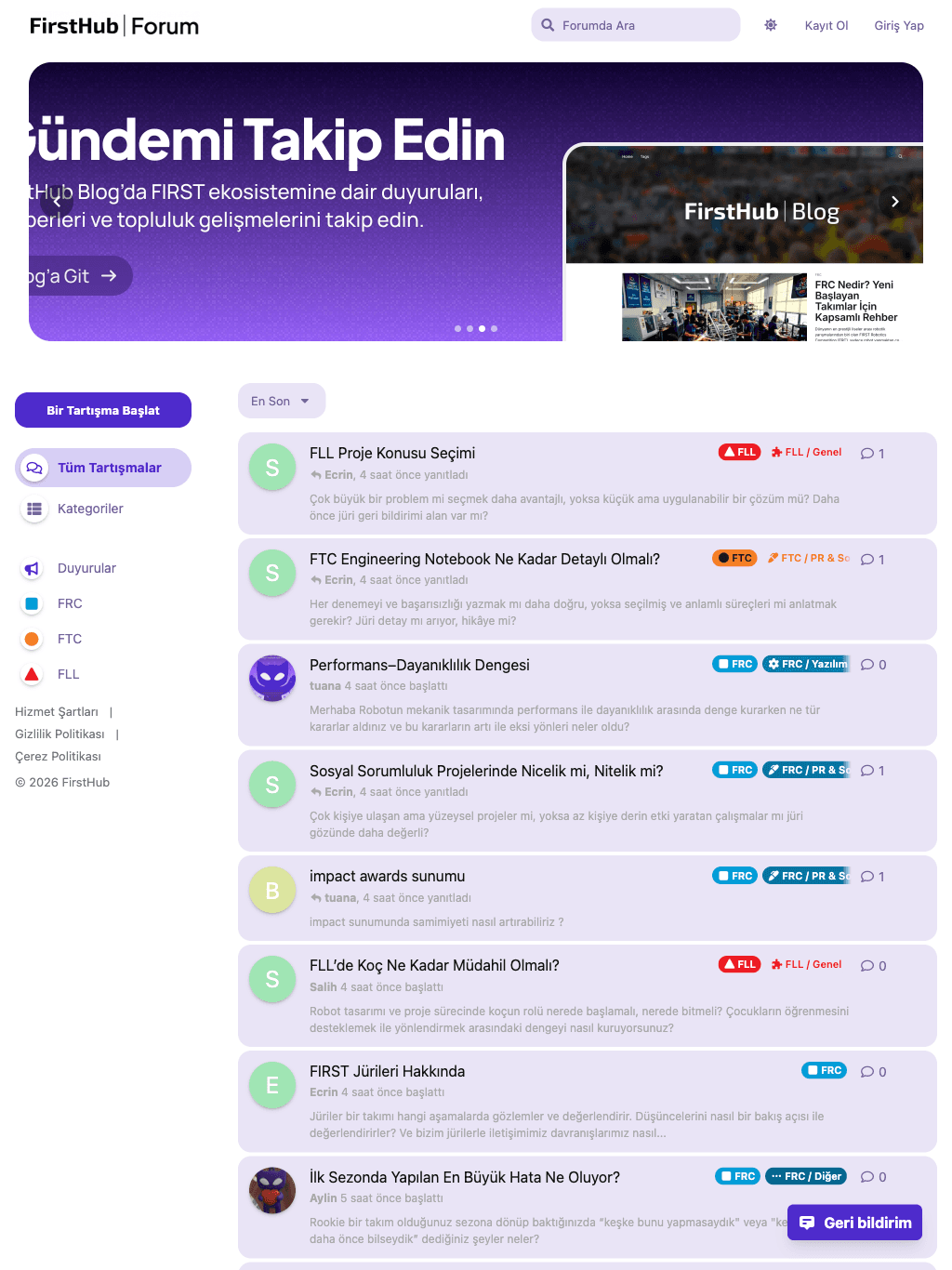 FRC,FTC ve FLL takımları için Türkiye'nin en kapsamlı bağımsız kaynak,eğitim ve sosyal etkileşim platformu.Öğren,Paylaş ve takımınla birlikte büyü.